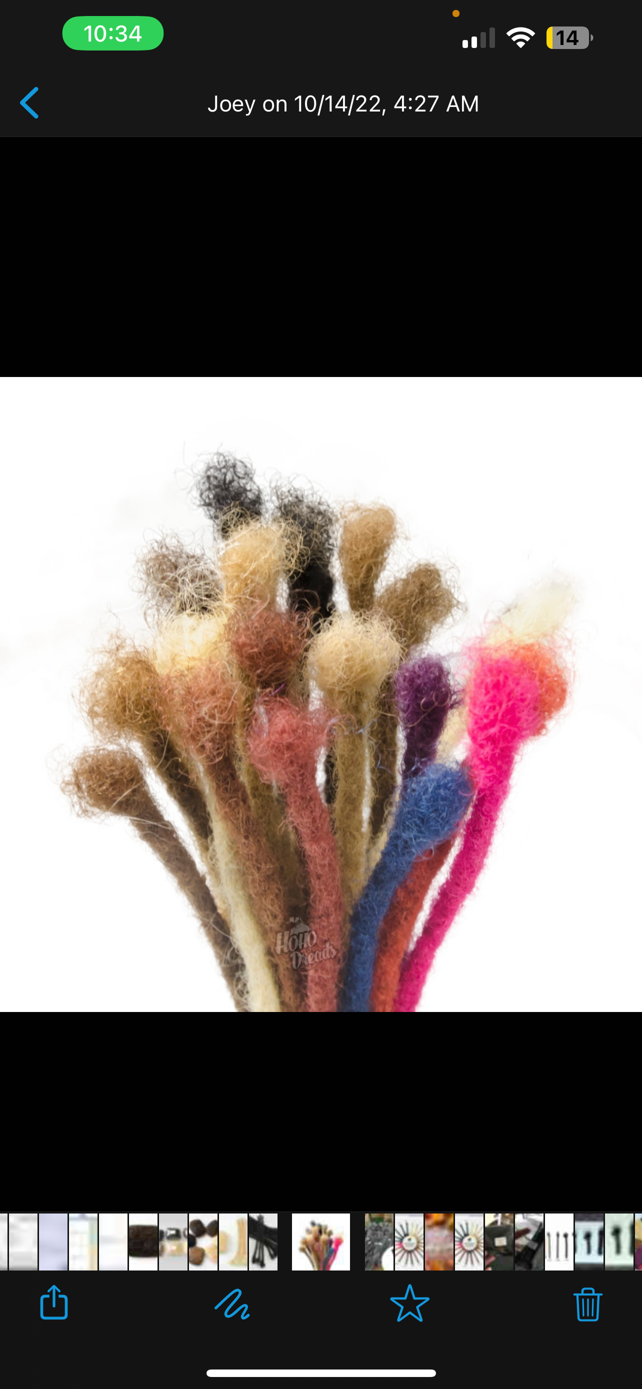 Handmade human hair loc extensions small/medium size, length 12 to 16 inches. One pack 75 count. Or medium/large size, length 18 to 22 inches. One pack 35 count.